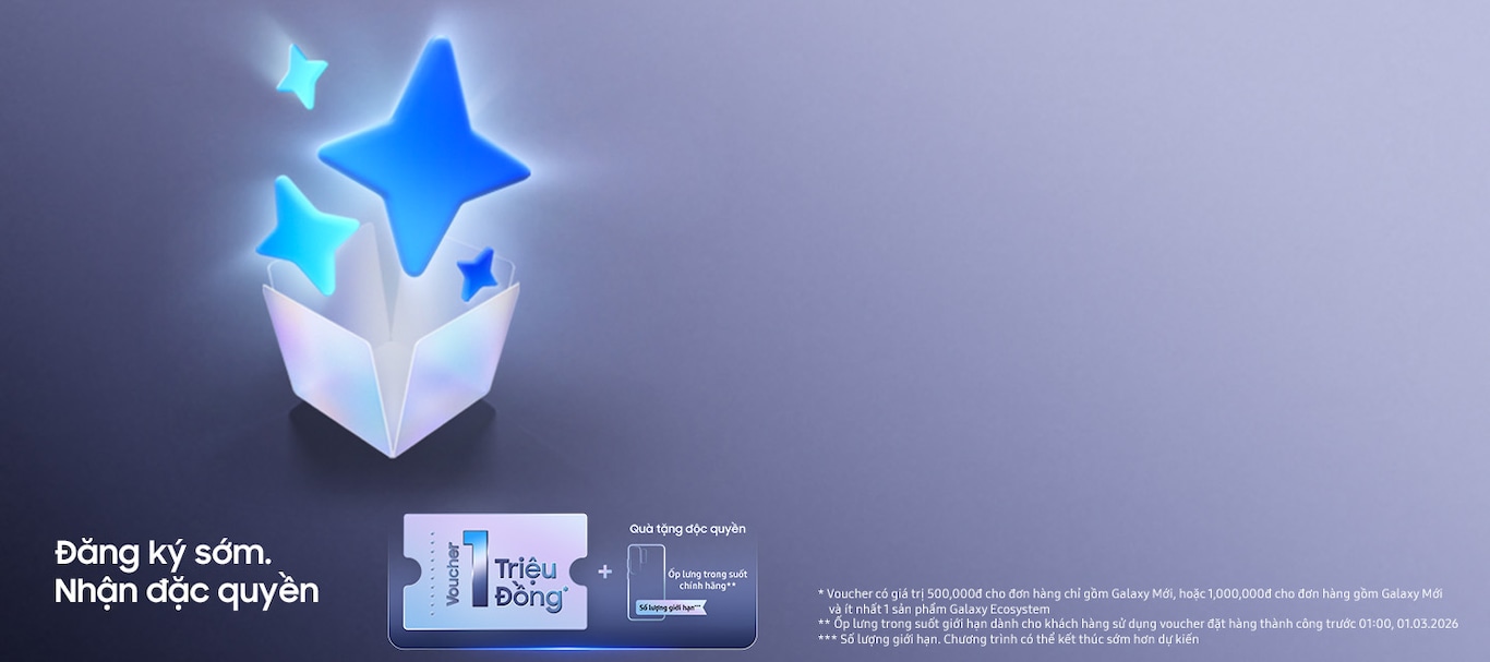 • Chương trình khuyến mãi trong giai đoạn đặt trước dành cho mọi khách hàng đặt mua sản phẩm mới tại Samsung Official Store trong giai đoạn đặt trước.